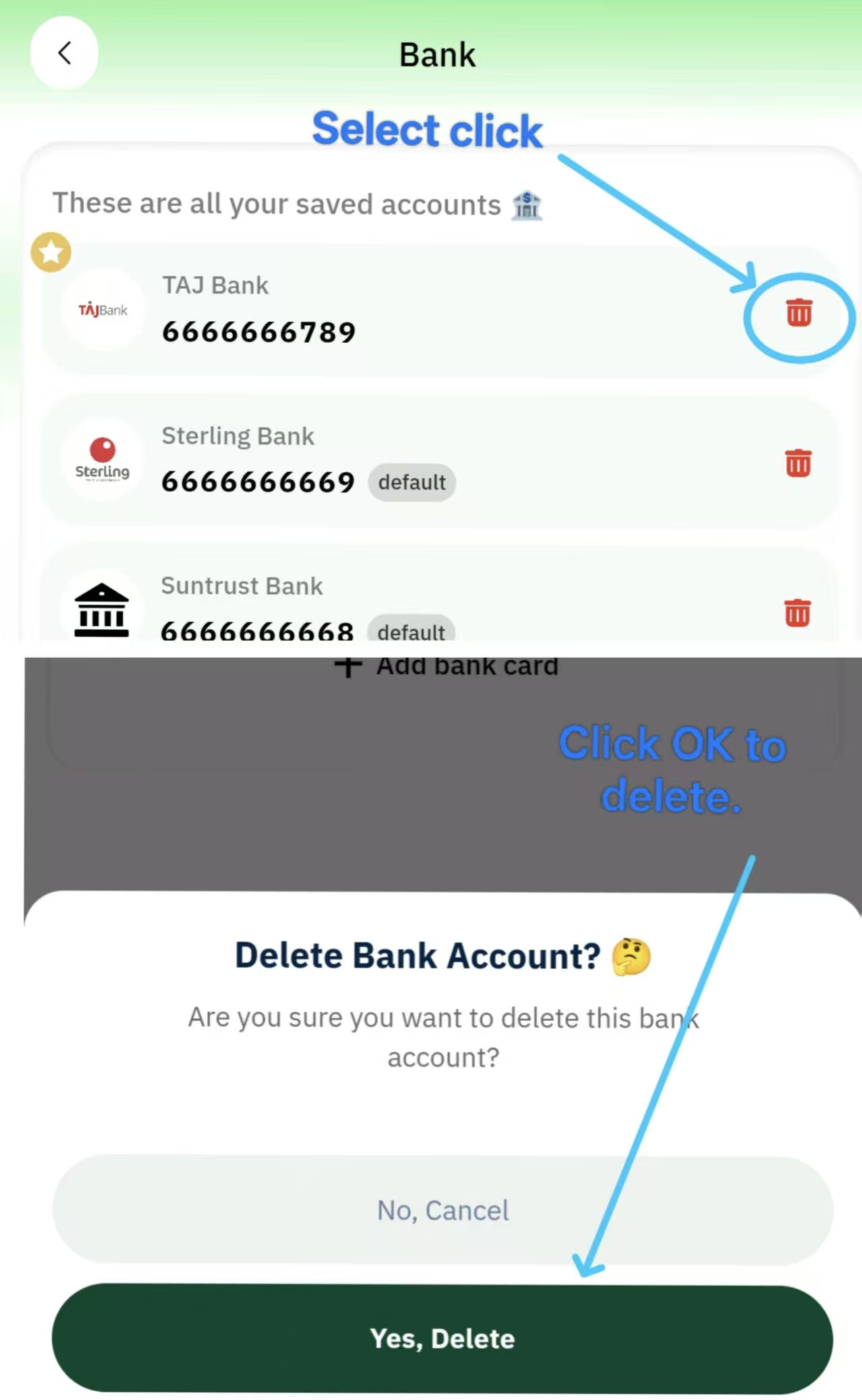 Step 2: Locate and Select the Bank Card to Delete
