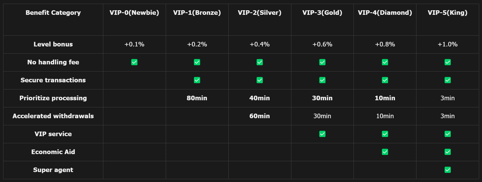 All Levels Covered: Whether you are VIP-0 or VIP-5, all withdrawal operations are 100% free of handling fees.